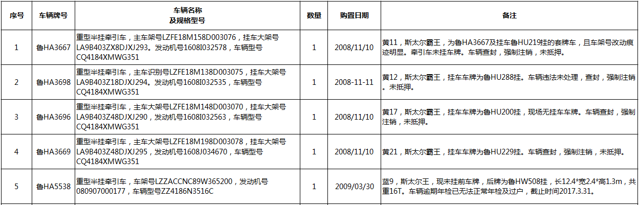 5、脫審貨車12輛(詳見清單),參考價27.2萬元,保證金5萬元。