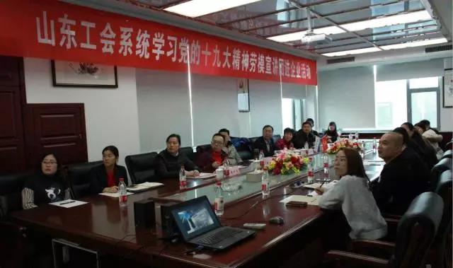 1月10日下午,山東省工會系統學習十九大精神勞模宣講團走進沃爾德集團開展宣講活動。