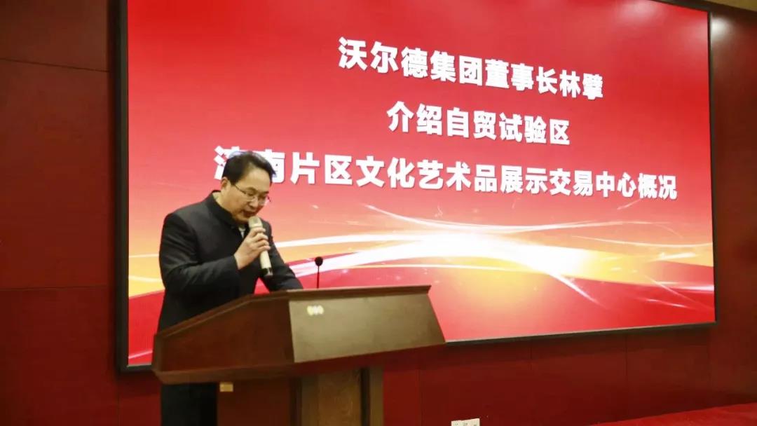 掛牌活動現(xiàn)場,沃爾德集團(tuán)董事長林擘介紹了“自貿(mào)試驗(yàn)區(qū)濟(jì)南片區(qū)文化藝術(shù)品展示交易中心”概況。
