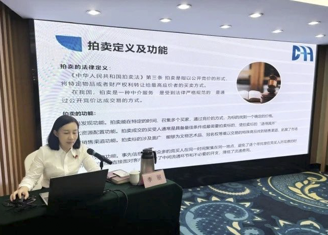 李麗老師在講課中以《我們一起了解拍賣》為主題,從拍賣標(biāo)的、當(dāng)事人、程序、法律關(guān)系等多個(gè)知識點(diǎn),為學(xué)員們詳細(xì)講解拍賣業(yè)務(wù)如何開展,全面梳理了拍賣企業(yè)落實(shí)合規(guī)要求,內(nèi)容翔實(shí),學(xué)員們反響熱烈,收貨頗豐。