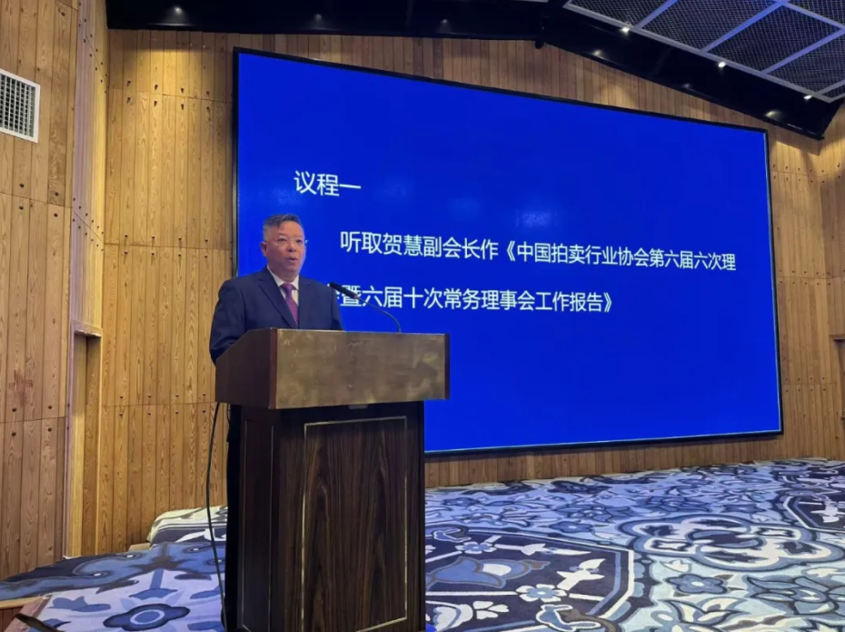 首先,賀慧副會長作《中國拍賣行業協會第六屆六次理事會暨第六屆十次常務理事會工作報告》。報告顯示,截至今年10月底,全國共有拍賣企業 11534 家,比上年同期增加1180 家。全行業拍賣成交總額8273.66億元,同比增長29.50%,成交總場次為17.24萬場,同比增長8.22%,傭金收入39.26億元,行業整體市場表現已超過疫前水平。具體到各業務板塊,房地產拍賣增長顯著,土地使用權、機動車、無形資產拍賣在宏觀政策的拉動下,實現穩步增長。從委托來源看,各委托來源拍賣業務基本穩定,法院委托(含司輔)增長迅猛,除破產清算組委托為正增長外,其余委托來源均有小幅下調。總體看來,面對行業內外諸多困難和挑戰,拍賣行業表現出了強大韌性,各業務板塊持續調整優化,隨著存量政策有效落實和增量政策加力推出作用下,拍賣市場有望延續不斷轉暖向好的態勢,市場繼續呈現積極變化。