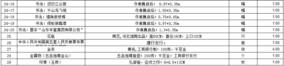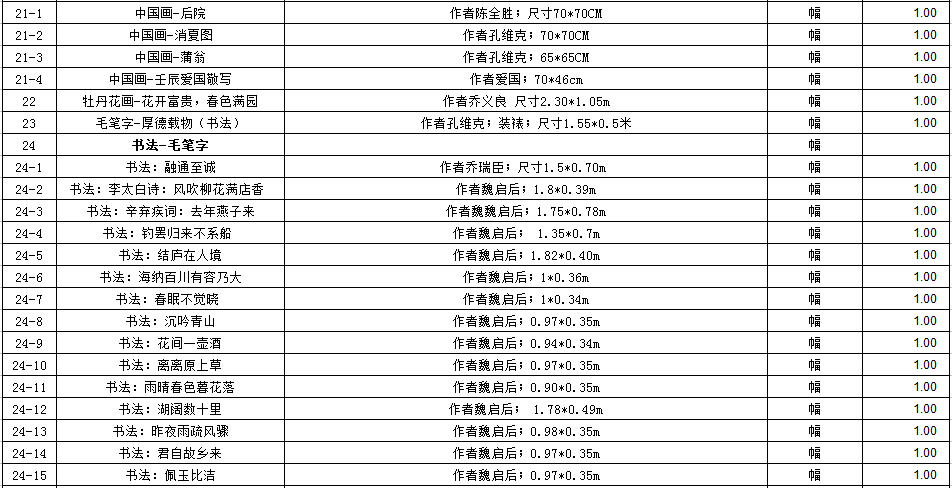 存貨物品一宗(包括木質(zhì)雕刻類、玉石擺件類、字畫類等),詳見清單。參考價(jià)225.2萬元,保證金30萬元。